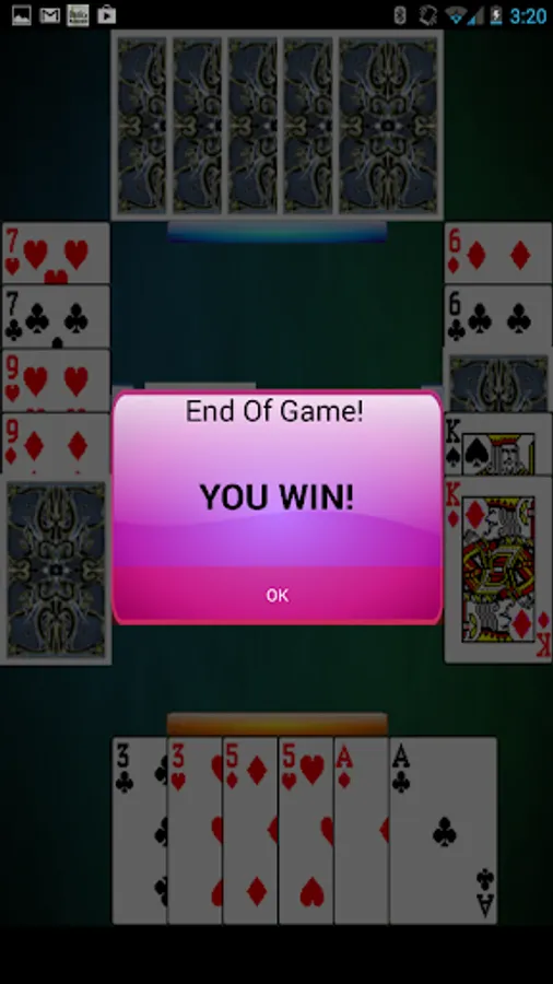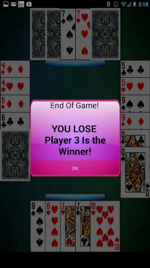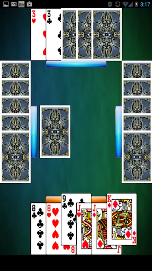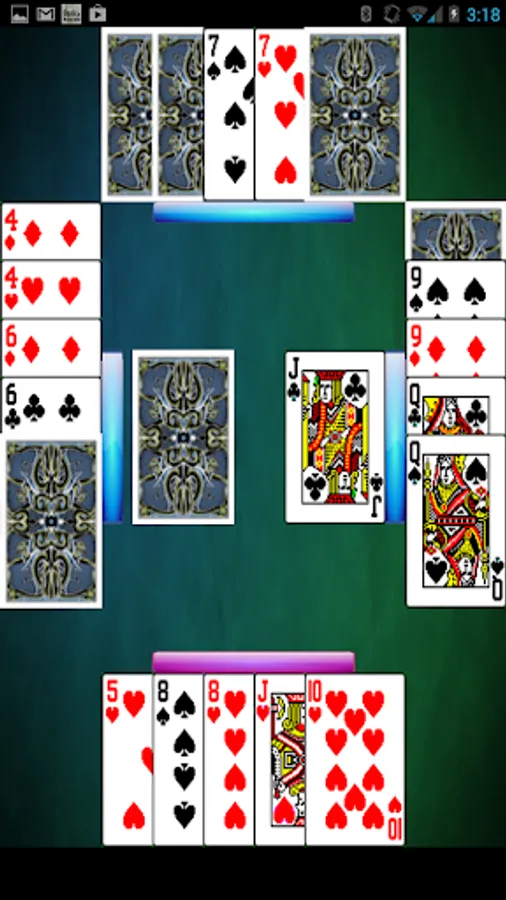 Pitty Pat is a very simple matching game where play is solely based on the rank of the cards. The first person to make three pairs starting from a five card hand is the winner. Most hands take only a few minutes to play, and oftentimes less than that. Anyone can squeeze a game of Pitty Pat in at any given time. You match wits against three robo players.