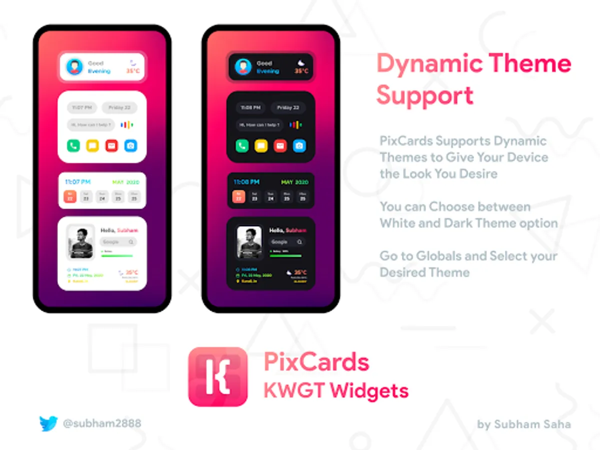 PixCards is a Carefully Crafted Modern Card Style Widgets Pack for KWGT. Its Minimal Design, Vibrant Gradient Colors, Dynamic Theme Support will help you give your HomeScreen a Fresh Look.