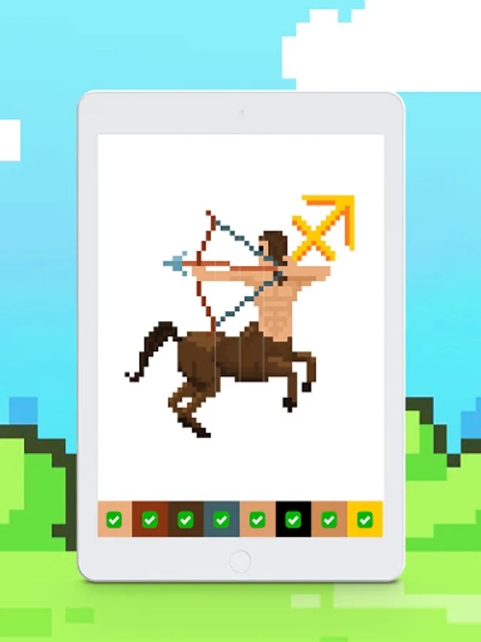 Color by number to relieve stress. Discover a variety of pixel art images by numbers. Pixel art for every taste. Coloring by numbers game for adults. Relax. Enjoy painting by numbers!