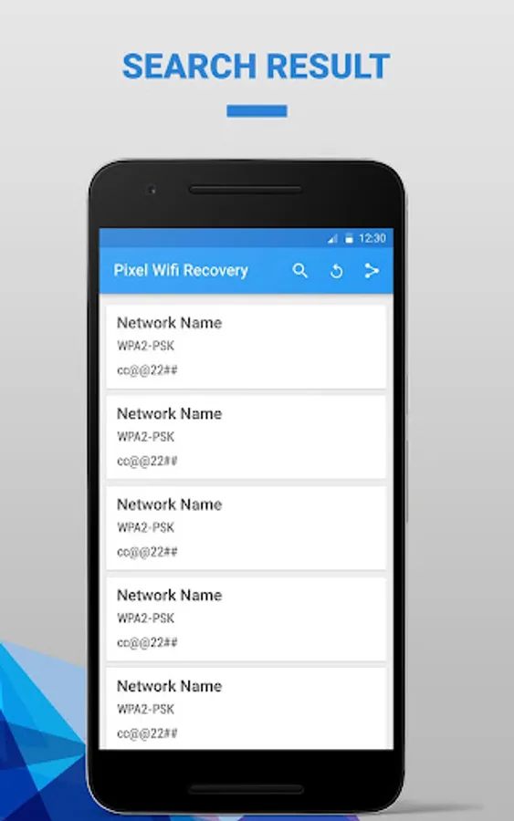 Pixel WiFi Recovery is app for showing all saved WiFi network and show his password, and help you view your WiFi password, which you can not see WiFi password in device default setting.
