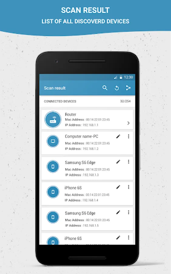 * Full device details including IP address, MAC address, Device Name,Device Manufacturer,and more.