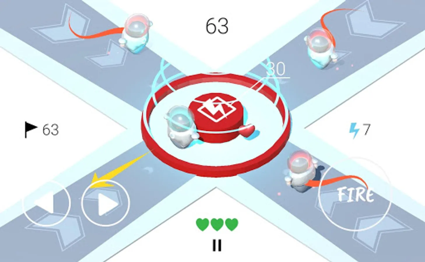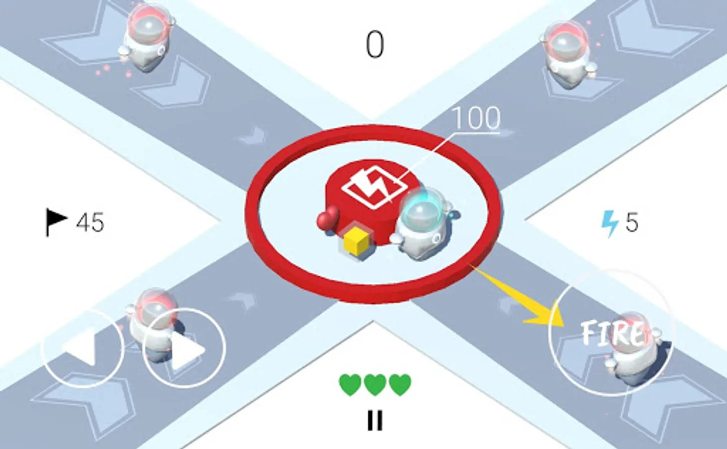You can collect “Heart”, generated from time to time to replenish your and tower’s health and move further.