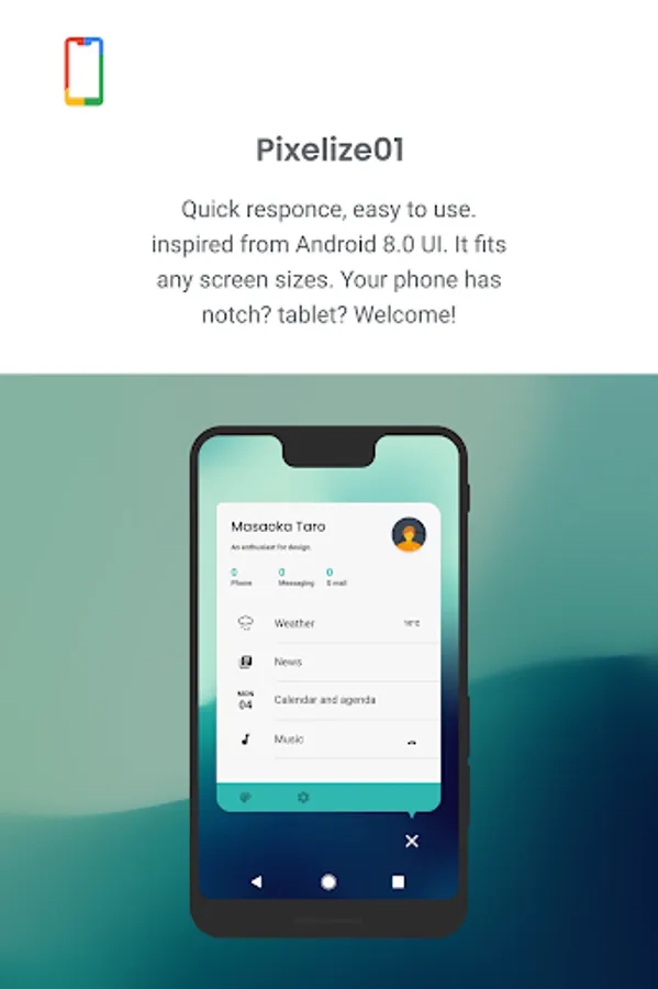 - Design are inspired from Google Pixel 2 and Android Oreo.