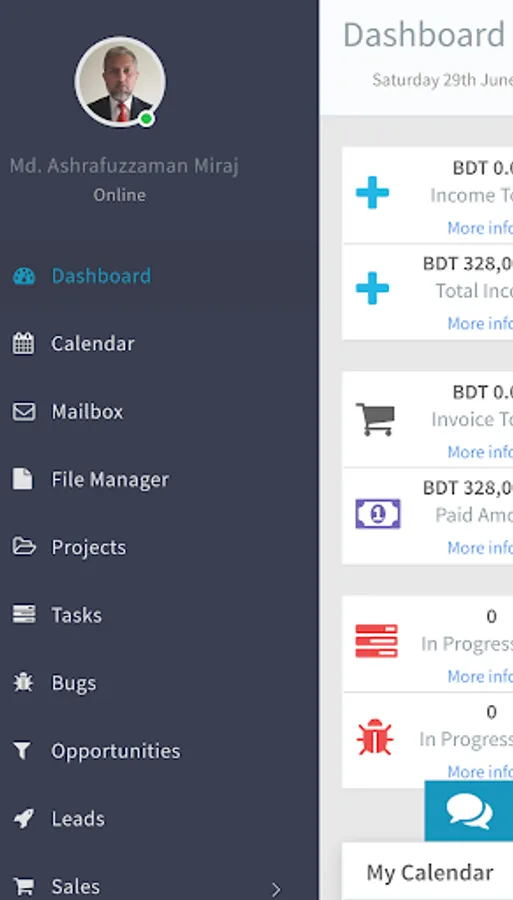 Through this App different tasks can be done perfectly like projects, payroll, invoice, stocks, leave management, accounting, file management.