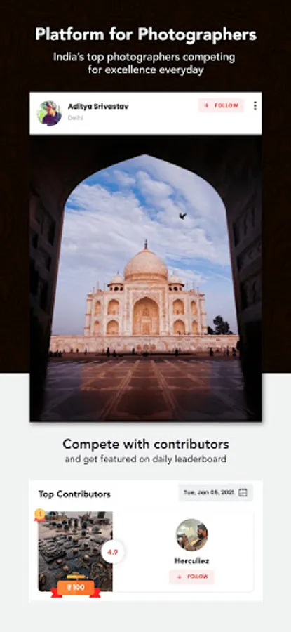 Join the league of photographers from all -across the country on our community platform, submit photographs for daily contests, showcase your work and win daily cash rewards. Share interesting short stories about photographs and get a chance to get featured in Editor’s pick every day