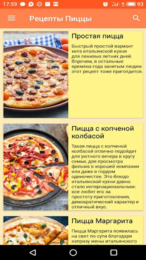 In this application, you will be available to a wide variety of pizzas, where for each there will be a detailed description of the preparation. Some recipes contain an exotic composition, but despite this, most of all recipes are available to every novice cook. Cook with pleasure!