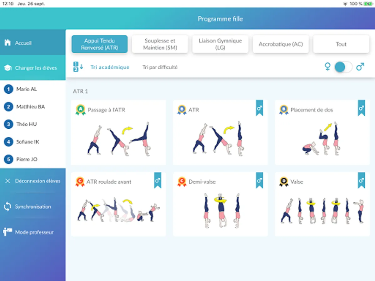 Gymtop is the reference application for teaching gymnastics. The app covers the entire girl and boy high school / college program through 91 elements and more than 400 exercises.