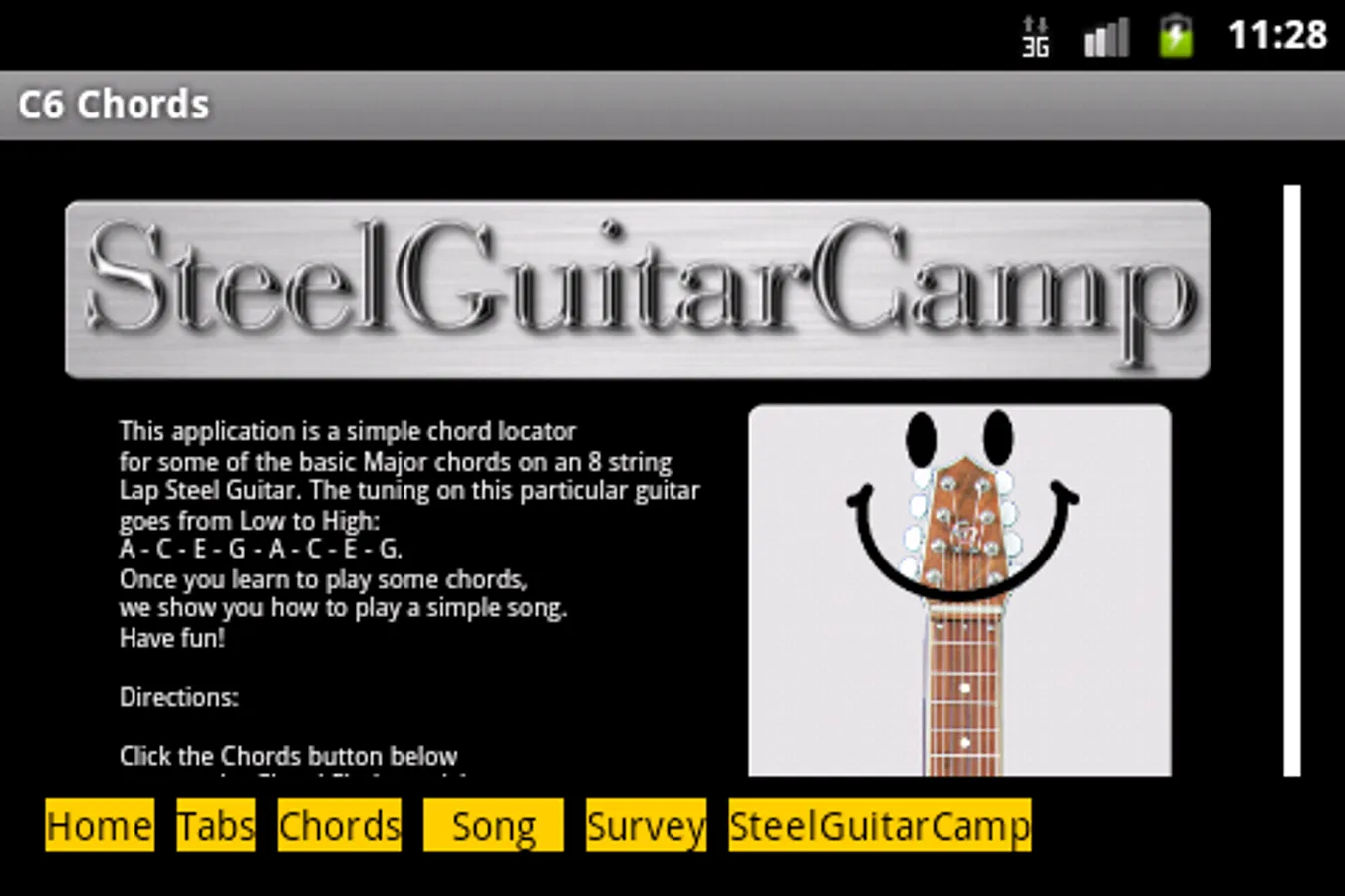 This application is a simple chord locator for some of the basic Major chords on an 8 string Lap Steel Guitar.