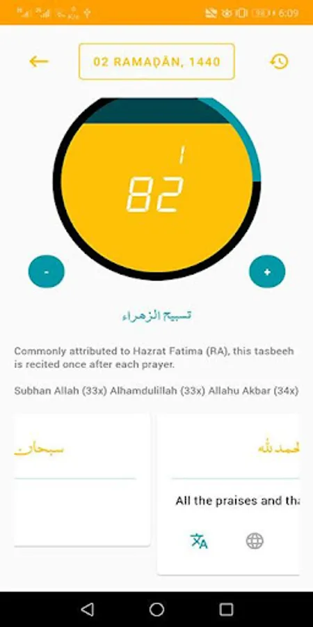 Tasbih comes with a number of in-built prayers, including Tasbih-e-Fatima, and allows you to add more custom prayers. You can keep a count of each of your prayers separately.