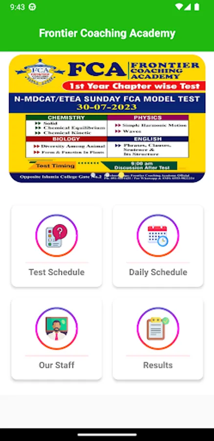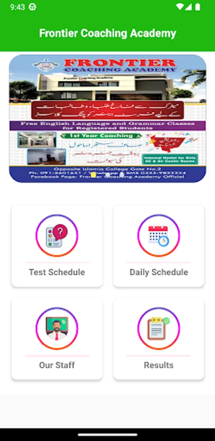 Official Android app for frontier coaching Academy Peshawar for timetable exam schedule and online results.