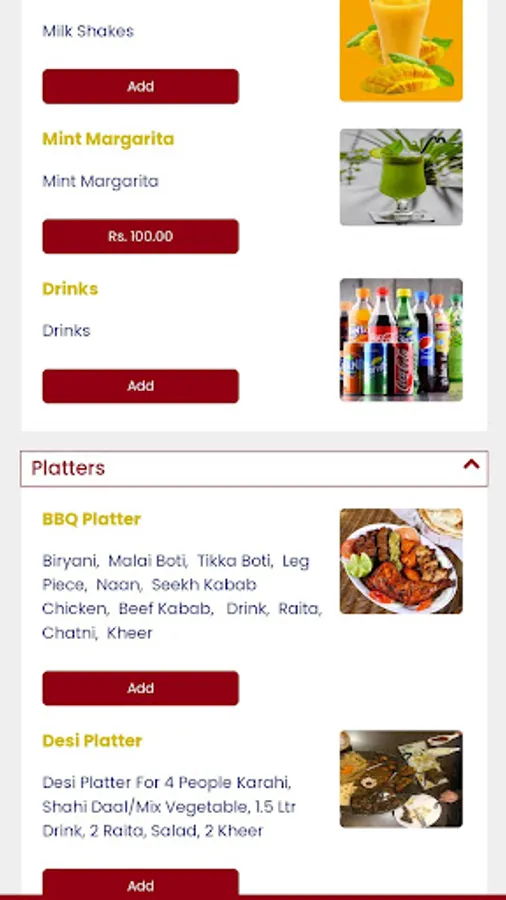 Order online your favorite desi, sea food, fast food, and nashta. Desi food include chicken karahi, mutton karahi, daal, vegetable. Burgers, wraps and rolls, broast in fast foods. Channay, nihari and paye in nashta.