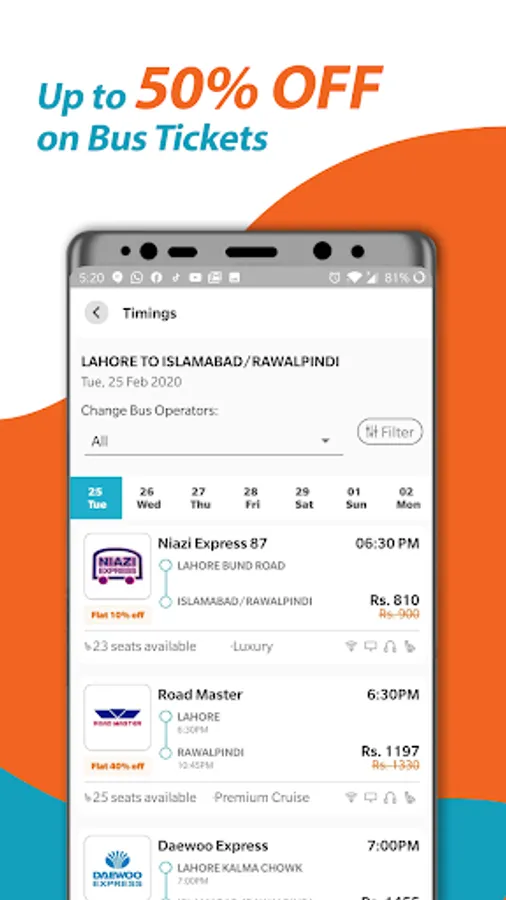 EasyTickets is Pakistan’s top ticketing application, currently having the largest inventory of buses (25 bus operators), 30 cinemas and all major events across the country, officially onboard. All tickets purchased via EasyTickets are digitally paid and instantly digitally delivered with no courier or cash-on-delivery delays. EasyTickets users can not only buy tickets but can also make instant price comparisons through its user-friendly user interface.