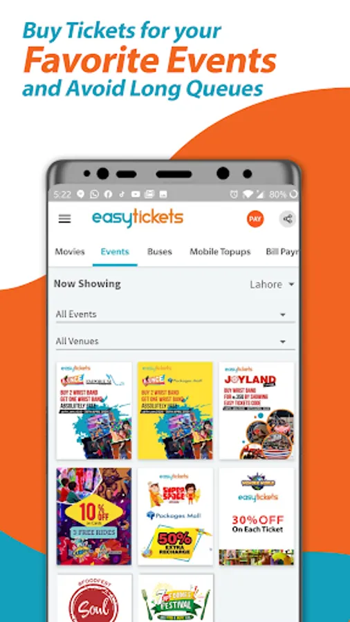 Download EasyTickets now for FREE and book your desired tickets on the go. In case of queries and feedback send us email at support@easytickets.pk