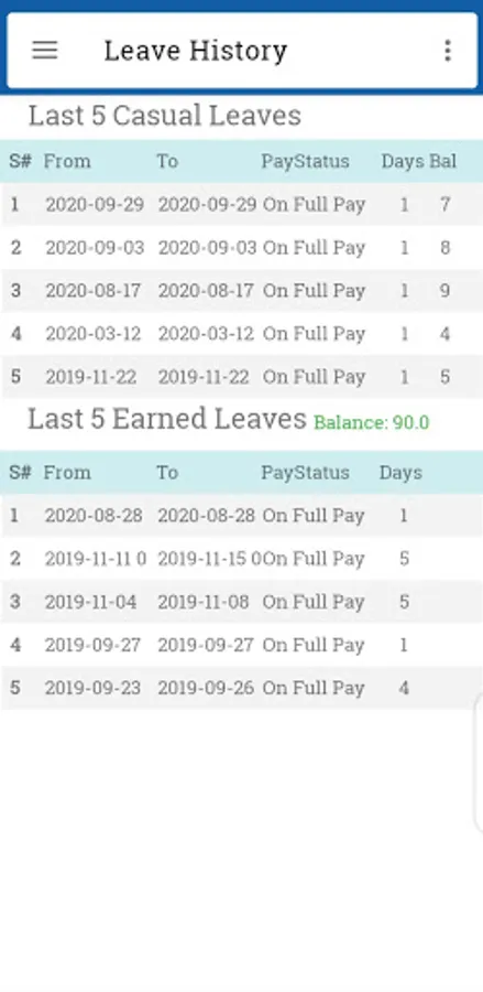 - Employee can check leave history (Last 5 Casual and Earned Leaves)