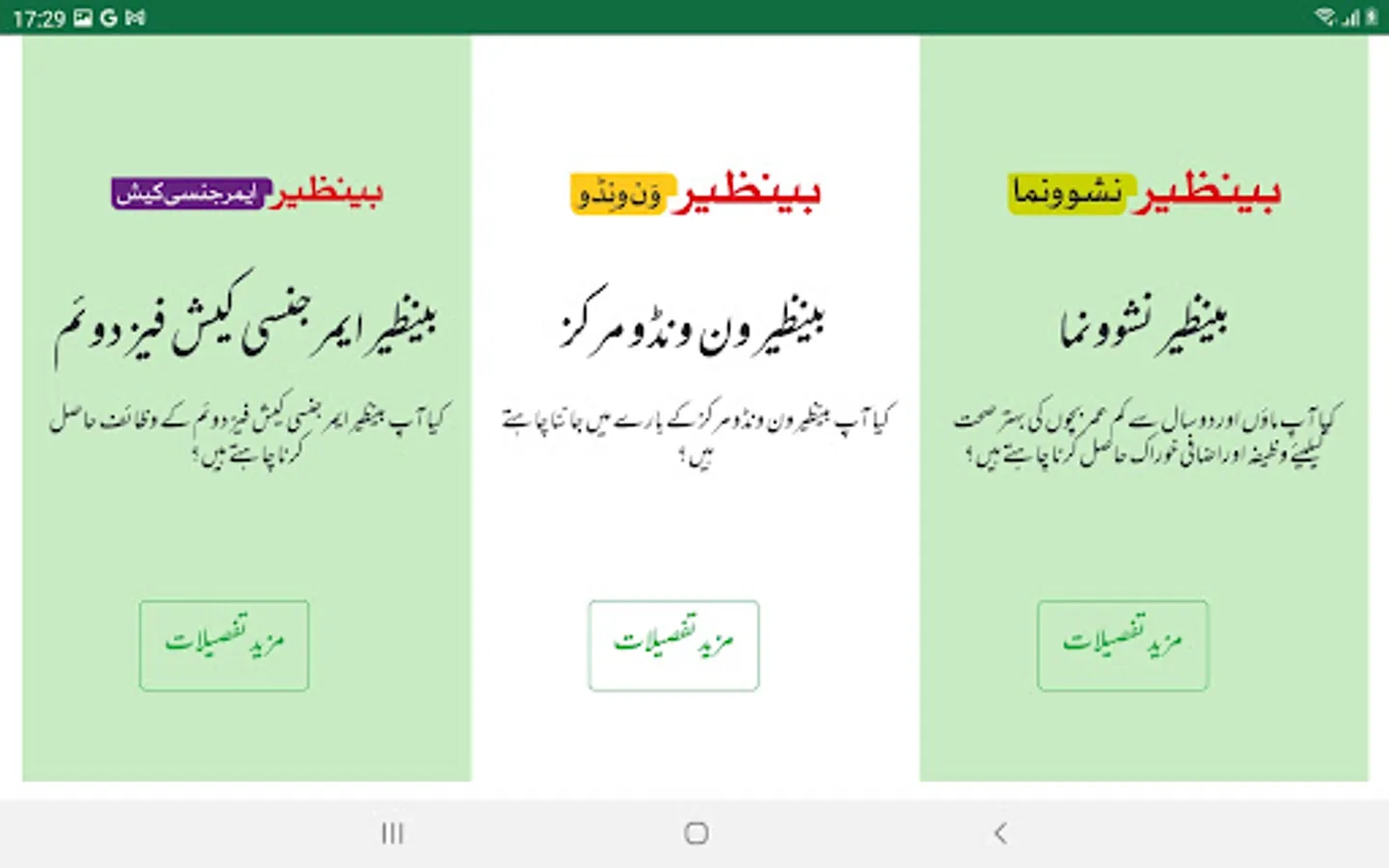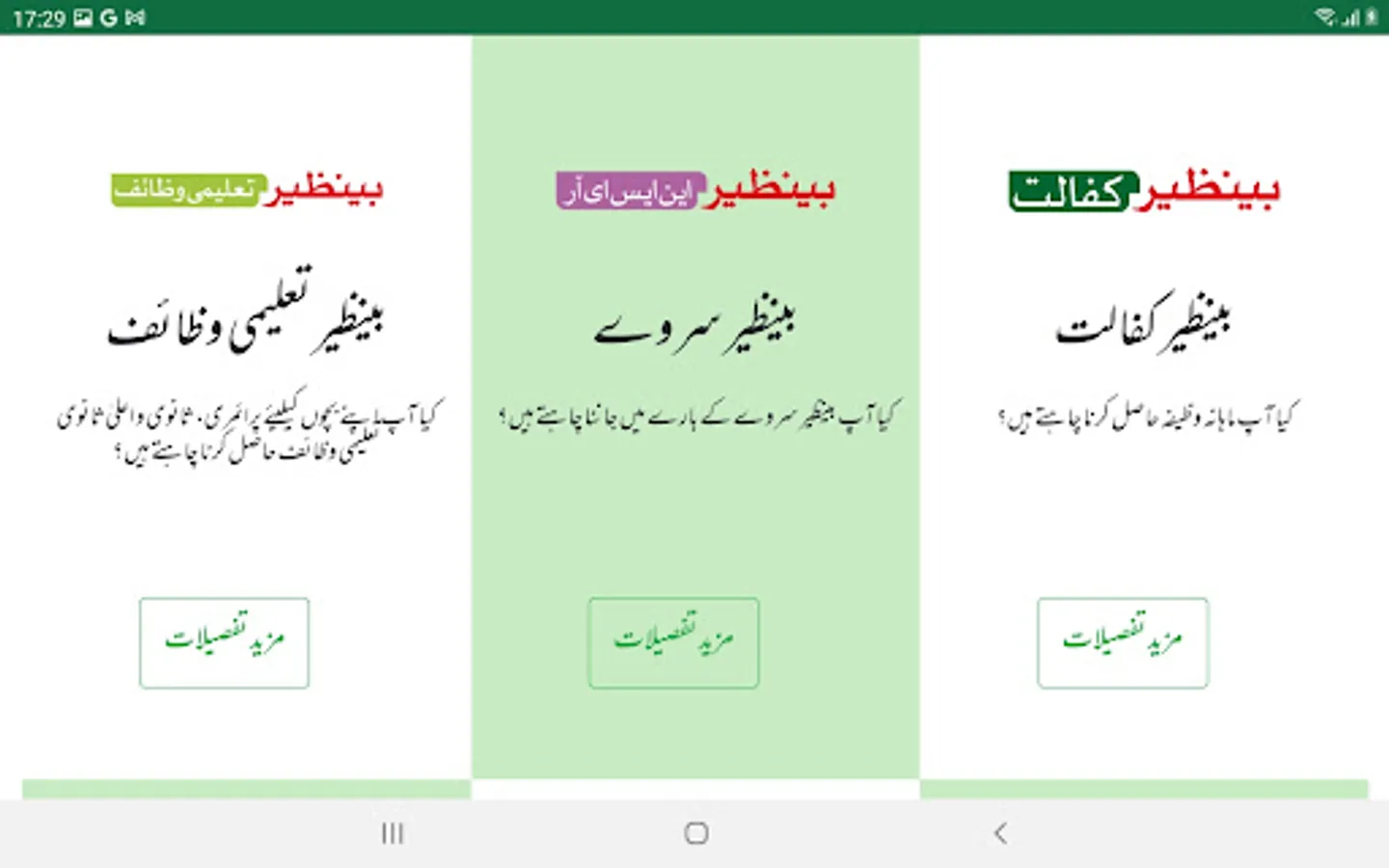 Specifically designed instructional program pages in Urdu allow masses to read and understand people centered information of myriad Benazir programs and initiatives: Benazir Kafaalat, Benazir Registration Desks, Benazir Nashonuma, Waseela e Taleem and several others.