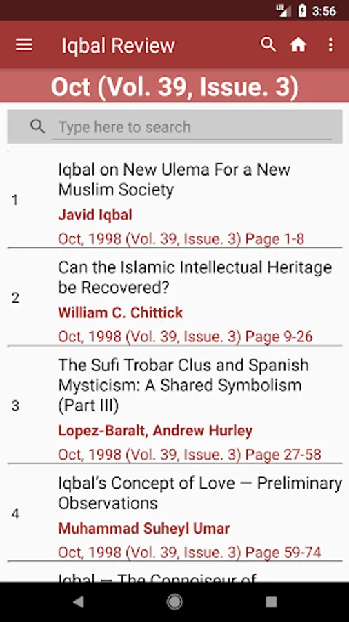 In this application, in addition to browse a specific issue, articles have been sorted by Author, Title and Subject. Subject tagging has been done as per Dewey’s Decimal Standard. Bibliography and Notes are generated as per Chicago Manual of Style.