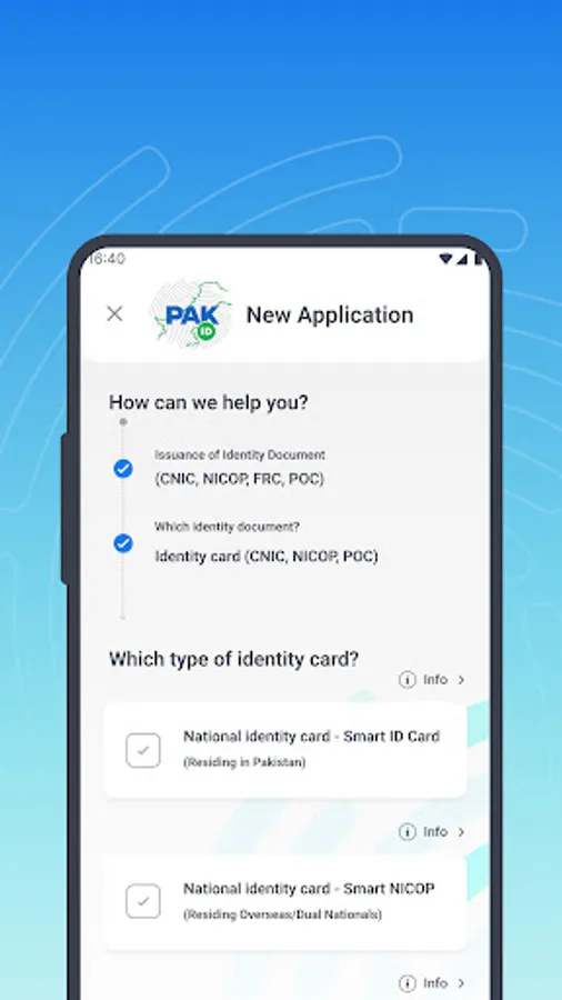 Pak identity is NADRA’s Online identity issuance service for Pakistani citizens that provides an end-to-end solution for applying for identity card. NADRA has launched this app to facilitate Pakistani citizens to apply for following identity documents