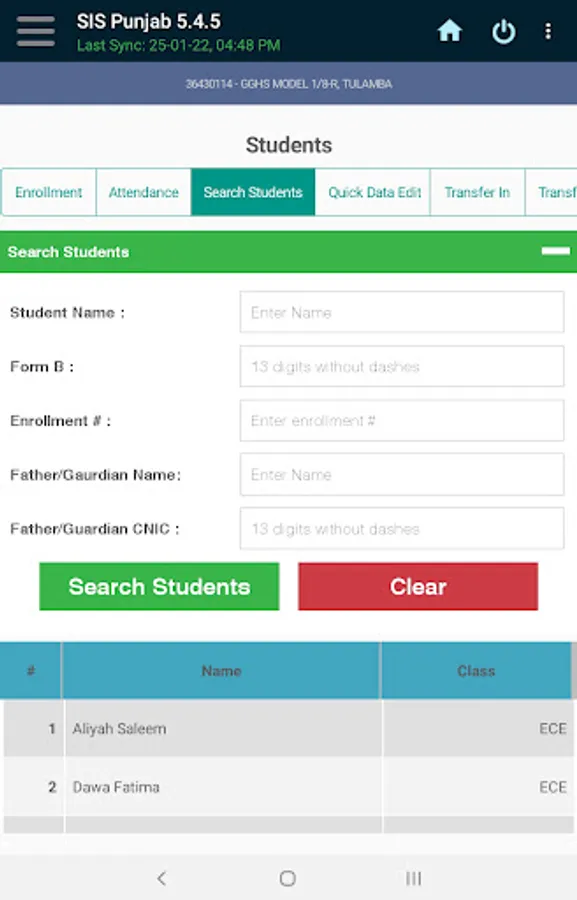 The School Information System (SIS) mobile app is used by the personnel of the School Information Department (SED) for real time data collection from the schools; for data monitoring by the AEOs; and for eTransfer by the teachers.