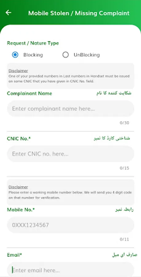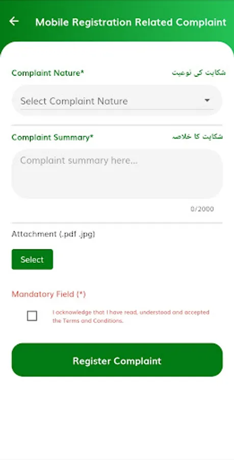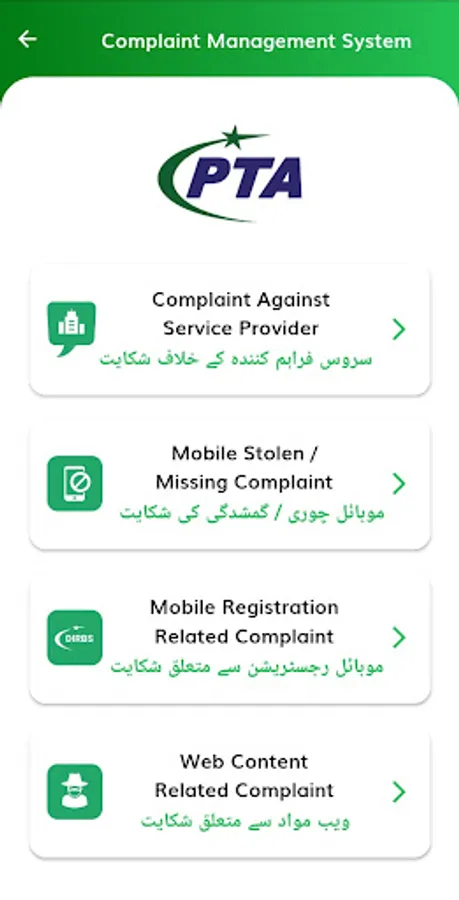 To facilitate the telecom users, PTA has launched Mobile App of Complaint Management System (CMS). The App has following features: