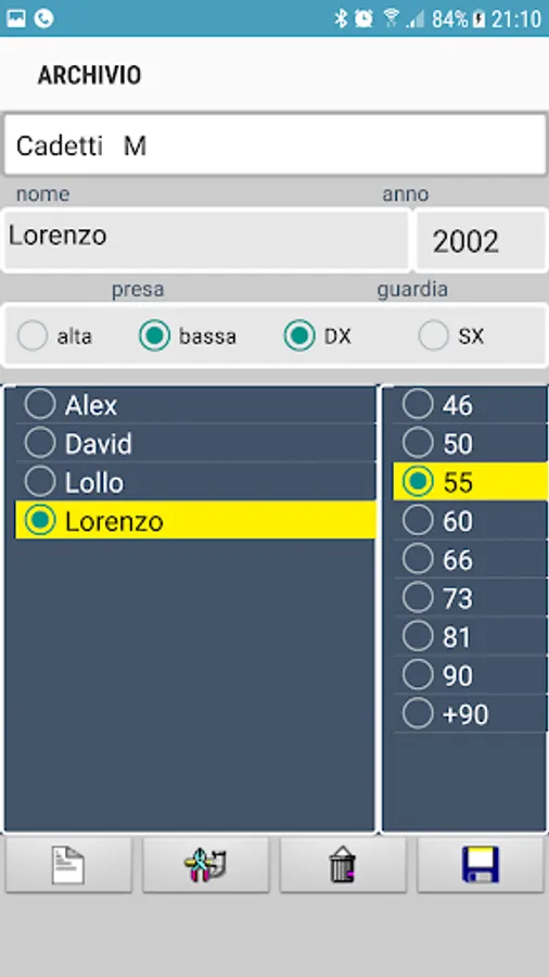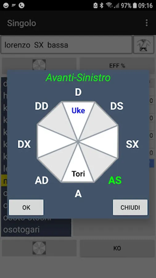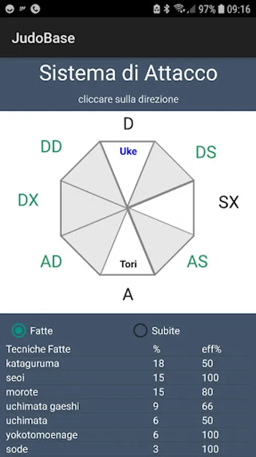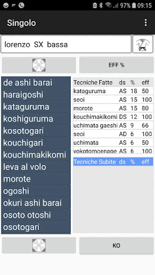 History matches played in the 'RACE' only selected techniques with the 'Eff' button.