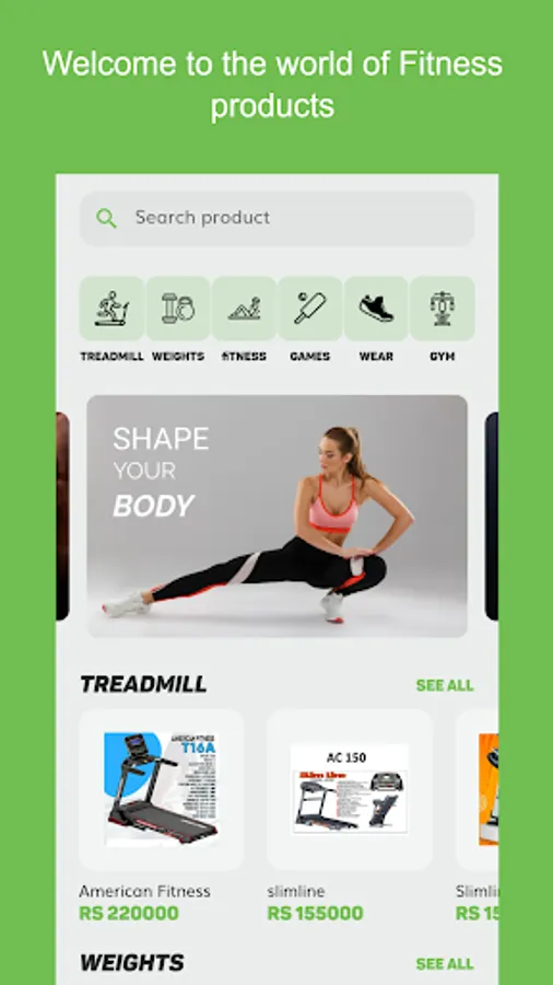 We have different Categories which includes Fitness product, gym equipment, treadmill.