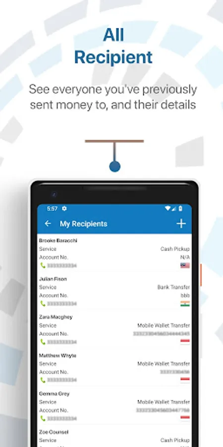 • Mobile Money Account: An instant service that enables you to send money directly to recipient’s mobile money account, no banking transaction or agent required. This service is for the millions of people around the world who do not have banking access or who are unable to access money transfer agencies right away.