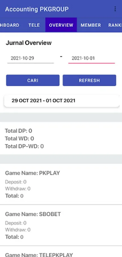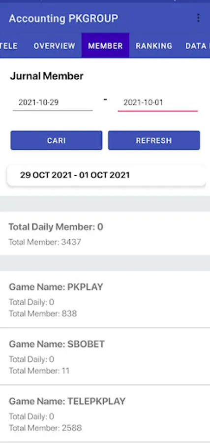 PKGROUP Accounting is an application to view all data related to transaction data, members, tele ranking and number data. The available features include: