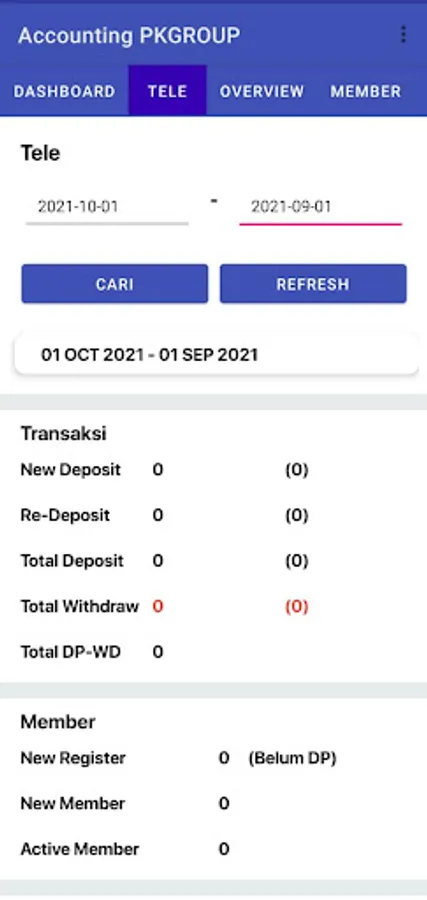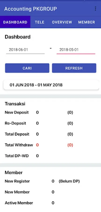 1. Dashboard with a complete and clear view to view information related to transaction data, members and tele.