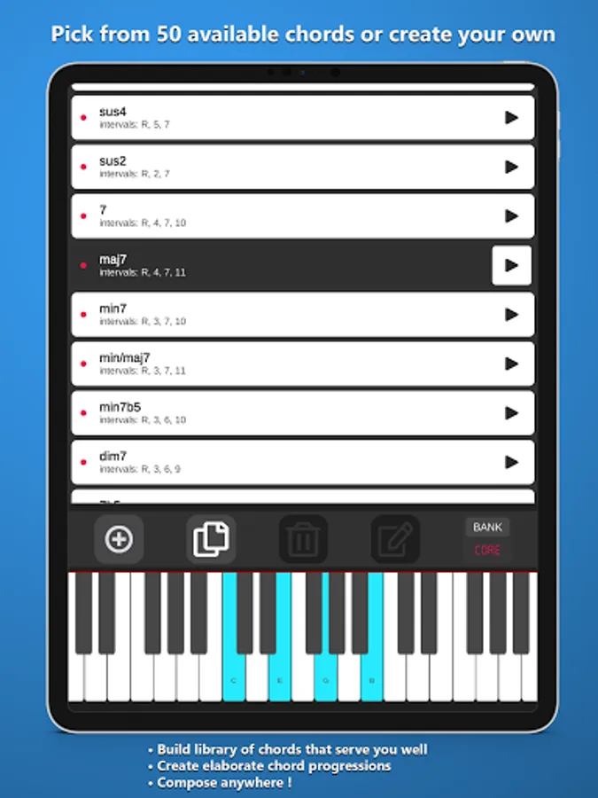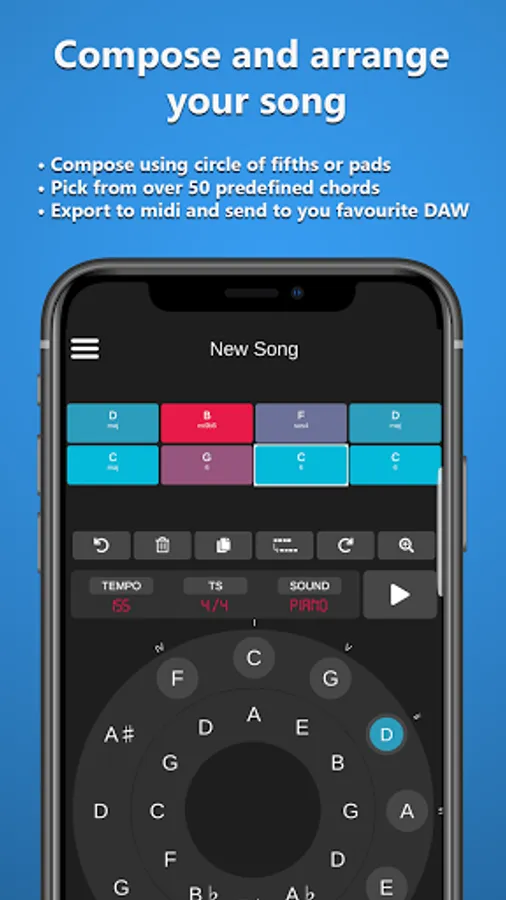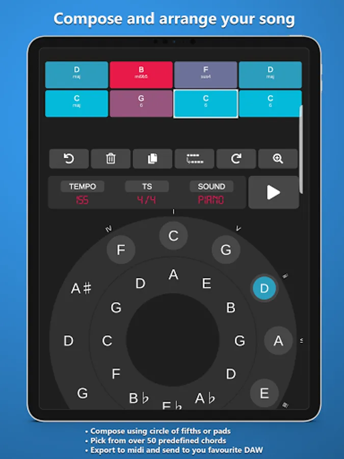 CODA is a chord arranger, progression helper and musical composition tool. Pick from over 50 predefined chords or create your own and compose beatiful arrangements which you can later export to your favourite DAW or play along with and improvise ! Use crircle of fifths to design harmony or convinient pads. Explore new musical ideas and get inspired !