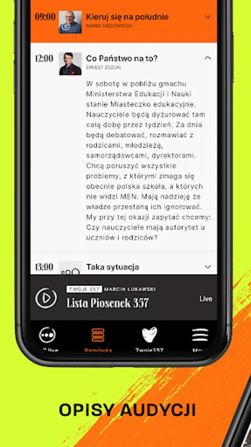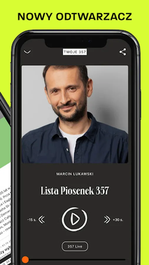 The only official app of Radio 357. It's an ambitious radio without ad blocks. Radio personalities, music, journalism, reportage, culture, sports and news. Start your day in the morning with Marcel. Enjoy the music served by Marek Niedźwiecki, Piotr Kaczkowski, Piotr Stelmach and a strong team of music editors. Ernest Zozuń in Afternoons sums up the day for you. Kuba Strzyczkowski asks what you think. Favorite artists in an unusual role of hosts? It's also with us! In our studio, they present their musical choices for you, among others. Ralph Kaminski, Tomasz Organek, Krzysztof Zalewski, Baasch, and in podcasts Daria Zawiałow, Edyta Bartosiewicz, Kwiat Jabłoni and others. That's right - podcasts! There's plenty to choose from. Plenty of proposals for the demanding - with the quality mark of Radio 357. Install, create an account Your 357 and make yourself at home for longer!
