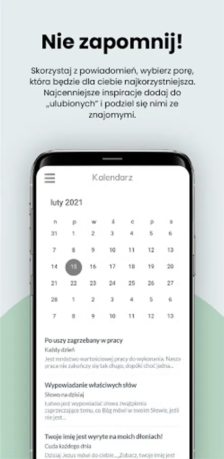 Daily Inspirations is an application designed for people who want to take care of their spiritual development every day. There you will find a carefully selected series of meditations on God's Word that you can enjoy every day, all year round.