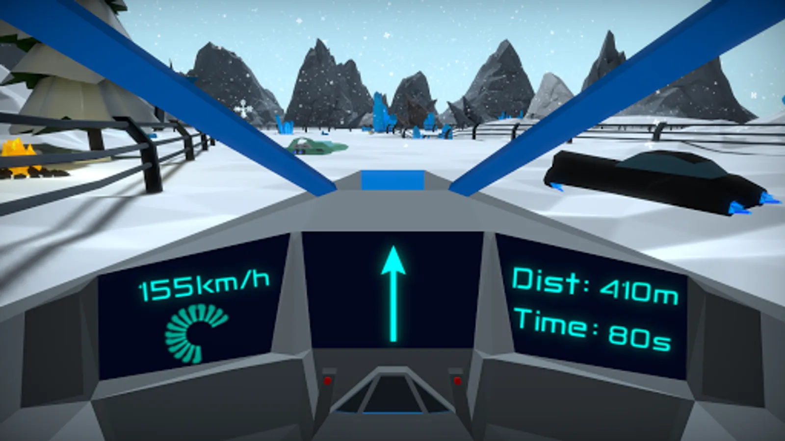 Enter an industrial garage and choose among modern or retro hoverships. Enjoy a perfectly refined space station, an ice desert or barren dale.