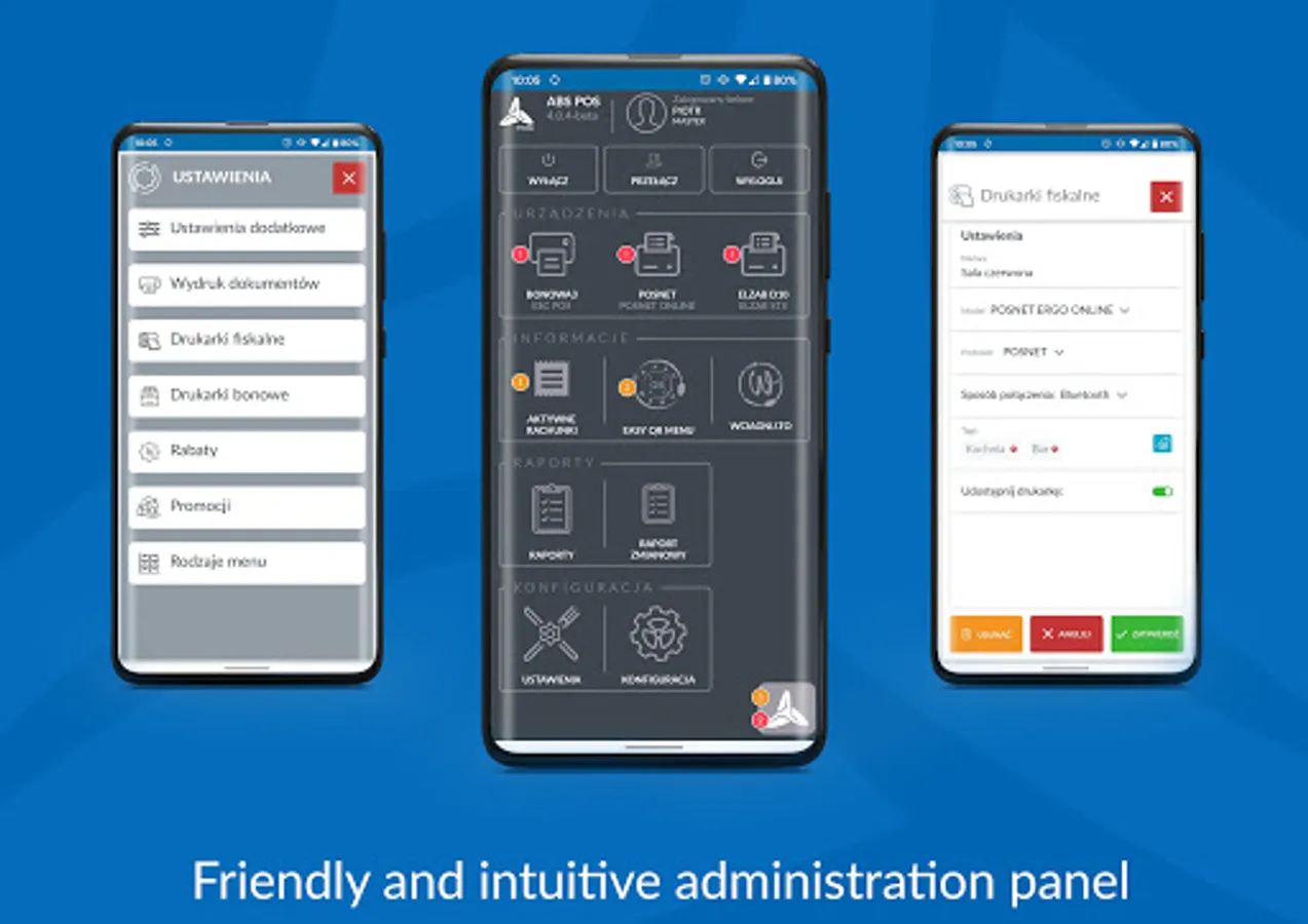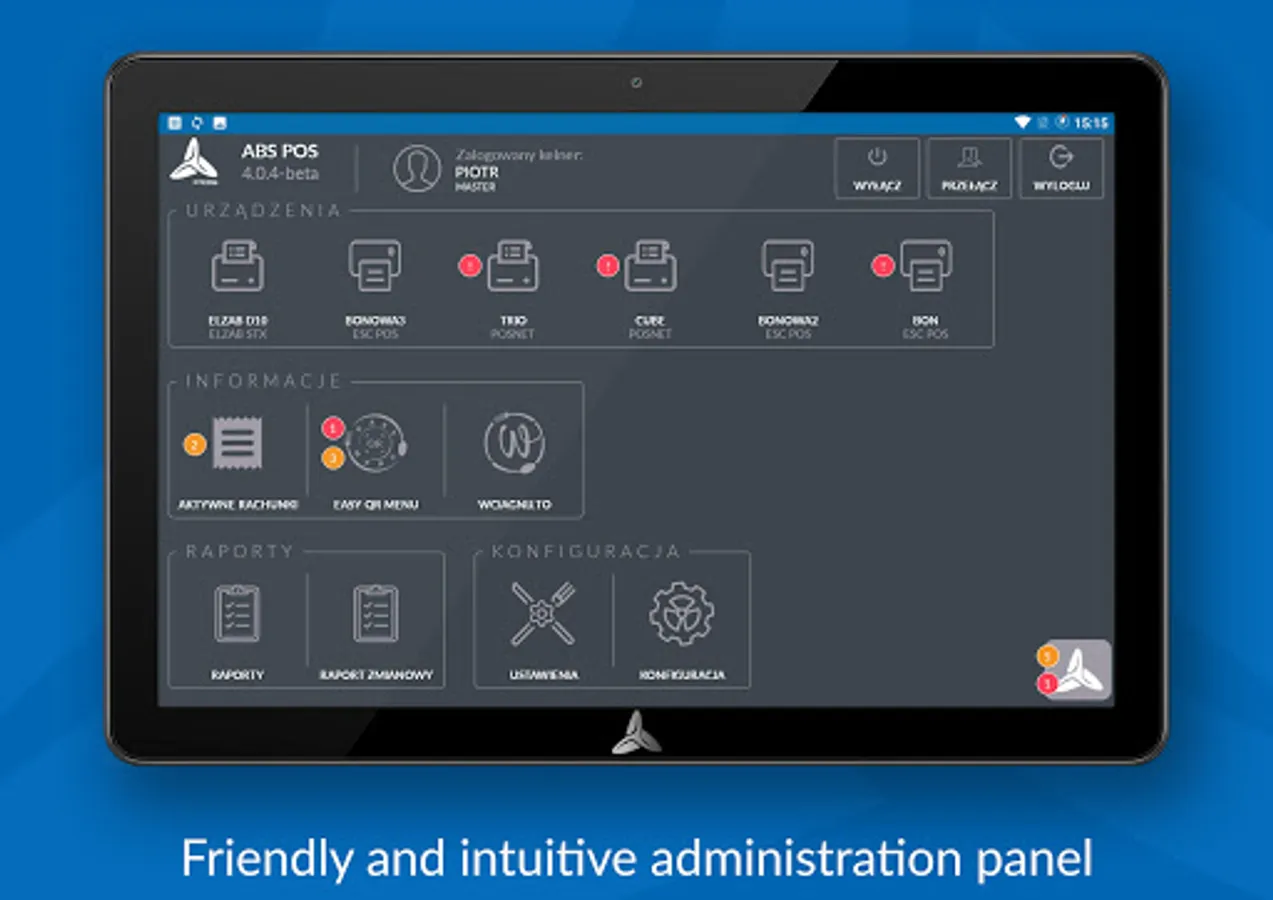 Via ABS POS it is possible to print receipts, invoices, orders or reports. The application works with fiscal printers and voucher printers (kitchen printers). The application includes additional modules - for device operation and an intuitive Dashboard. An additional element of the system is the on-line management panel configurable for each client individually.
