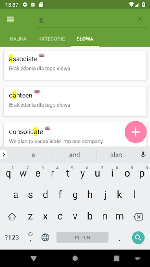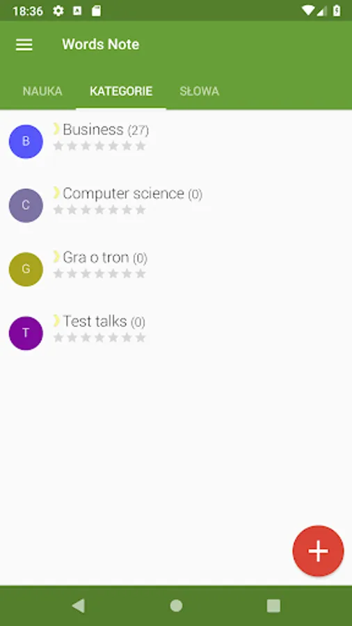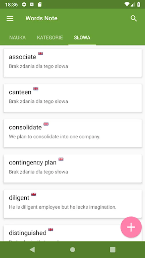 You can learn Spanish, German, English, Polish, Russian and Norwegian. You can add your words and group them according to your defined categories. You can edit your words whenever you want.