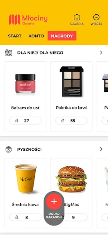 Shop at Galeria Młociny, scan receipts, collect virtual coins and receive rewards. We refund Gold for your purchases, and you exchange them for valuable prizes!