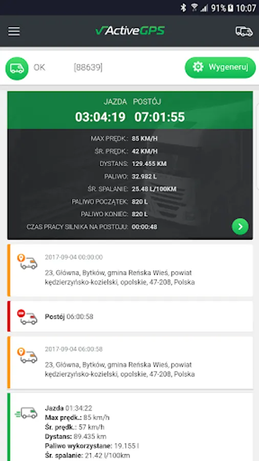 ActiveGPS mobile application offers its users constant access to information about their vehicles, their locations and routes recently completed. Available filter to narrow down the list of displayed information to selected groups of vehicles and the engine map based on Google Maps technology, high reliability and speed in correctly locating vehicles and drivers.
