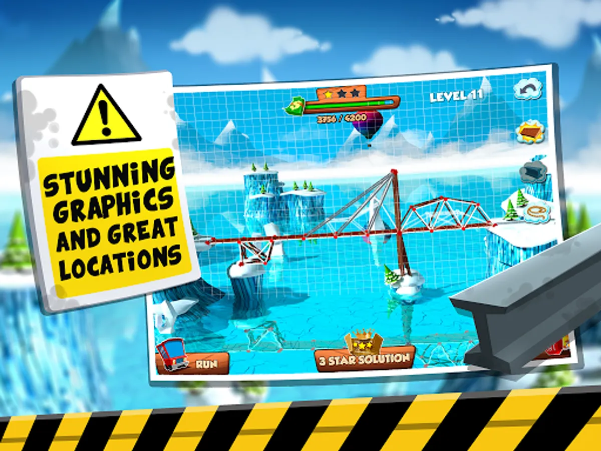 Discover 4 fantastic locations in this super realistic building simulator: Sunny Coast, Frozen Arctic, Wild West and the Infernal Volcano and get 3 stars in all of them. Use variety of building materials to raise your construction: Cables, Wood and Steel; but remember to stay within the budget. Other than that, you’re only limited by your imagination! Build your bridge as sturdy and efficient as possible and see if you can get the perfect solution in this physics puzzle.
