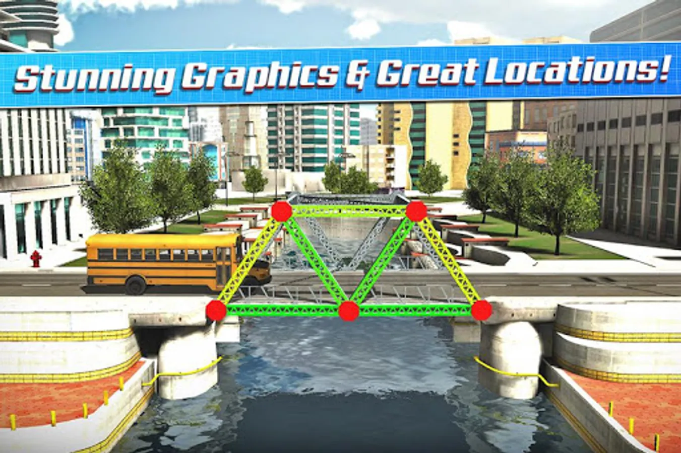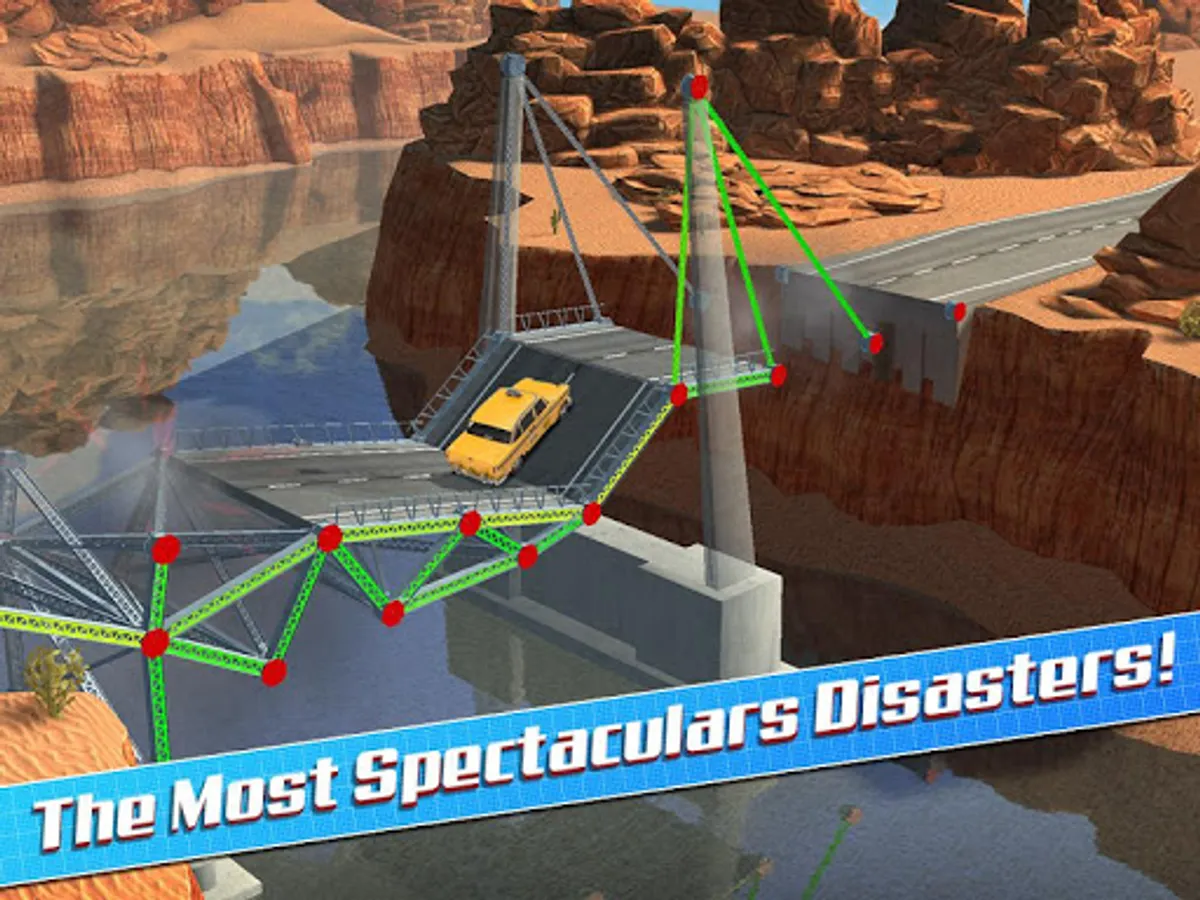 You will design and construct increasingly elaborate bridges across four varied locations. Each one is a different logic puzzle for a thoughtful builder. Things may seem easy when you start out in a city, but once you move to the canyon, valley and finally mountains it will get hard. The task is never impossible, but the size and resilience of your structures will have to increase substantially if you don't want to be responsible for a car crash. Use your logic and skill to become a master bridge builder and break some records along the way!