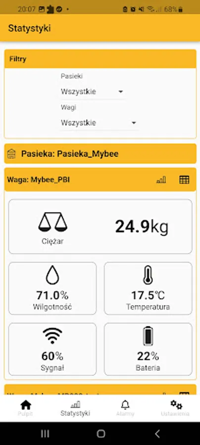 An application created to facilitate the work of beekeepers. It allows you to monitor the work of bee colonies by measuring the environmental parameters of the hive. Advantages of the application: