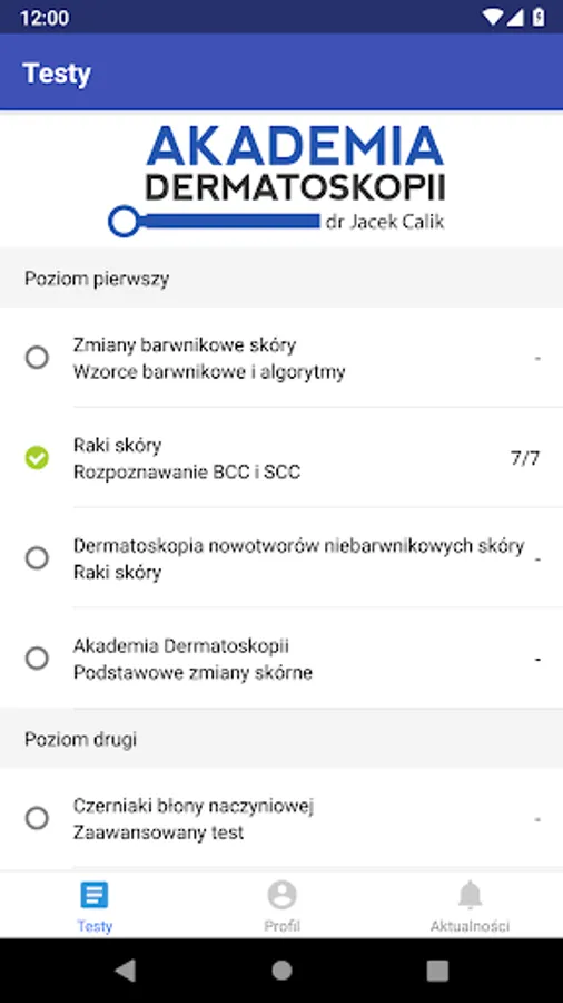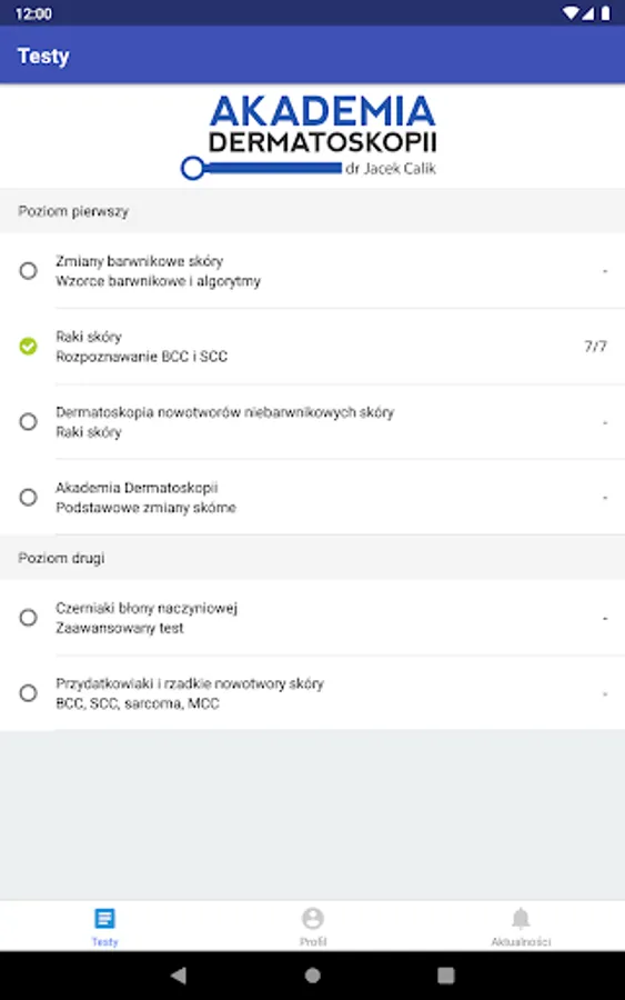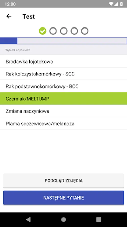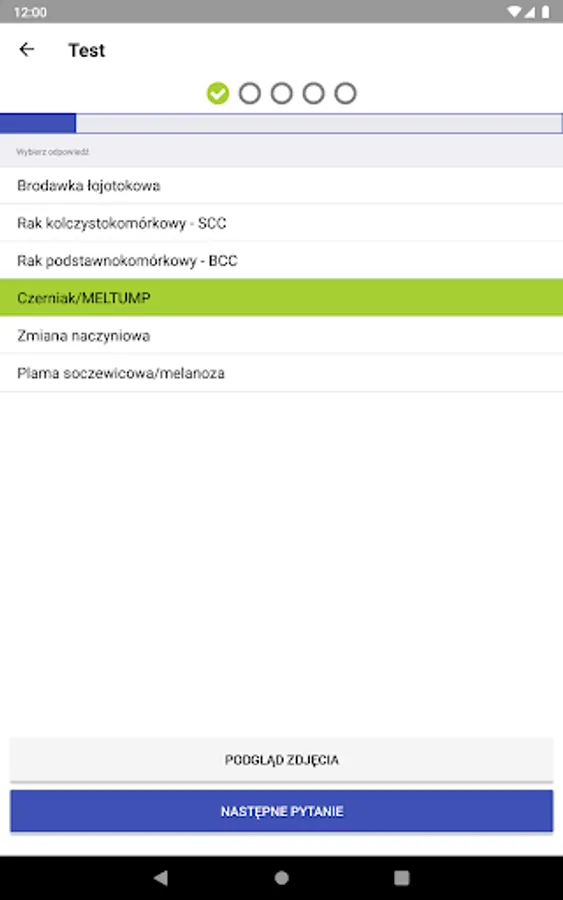 We have created a training program for doctors named Test Academy of Dermatoscopy in the field of dermatoscopy with which doctors can train and test their skills in this field. The program is authorized by the Academy of Dermatoscopy using excellent quality dermatoscopic images, which are verified in the hist-pat examination by experienced dermatopathologists. The doctor watching a dermatoscopic picture must, in a short time, answer what kind of change he / she is watching. After each question, the correct answer appears and at the end of the test a summary of all questions is collected.