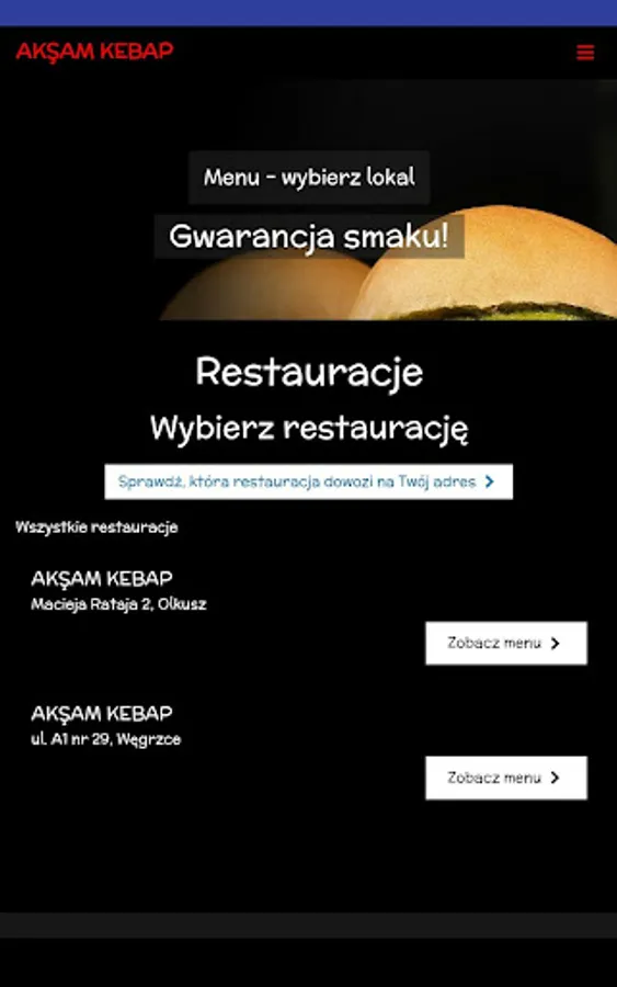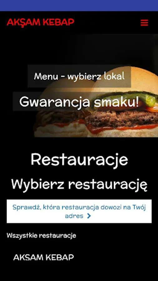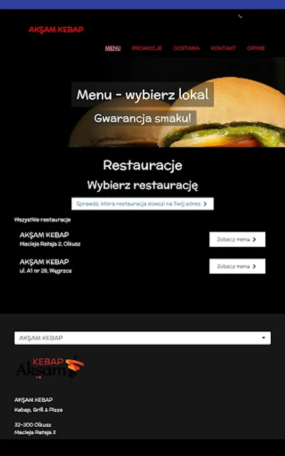 Application for ordering food from AKŞAM KEBAP in Węgrzce.