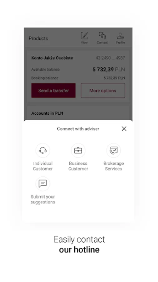 • contact the hotline directly from the application (after logging in there is no additional verification)