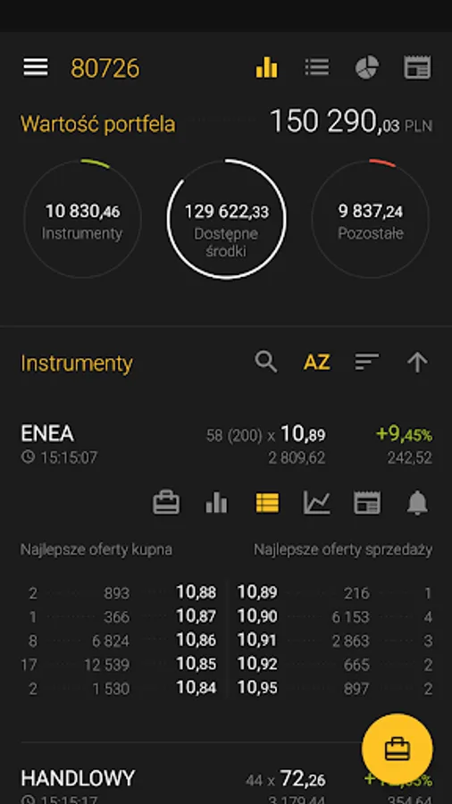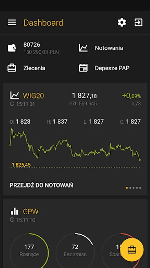 The Alior Giełda application is a free application that allows you to invest on the WSE via a brokerage account at the Alior Bank's Brokerage House, at any time from anywhere in the world.