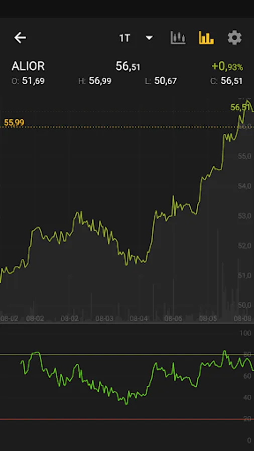 The mobile application enables comprehensive management of stock market investments. It allows for convenient submission of orders, their modification and cancellation, as well as for the ongoing verification of the account balance and submitted orders. Thanks to the Alior Giełda application, observation of quotations is possible anywhere. In addition, through it, customers have access to full-screen charts, market statistics, and also have the option of setting up PUSH notifications, thanks to which they will be up to date with information coming from the market. Logging in via a Pin or Touch ID code ensures investment security while allowing quick access to the application.