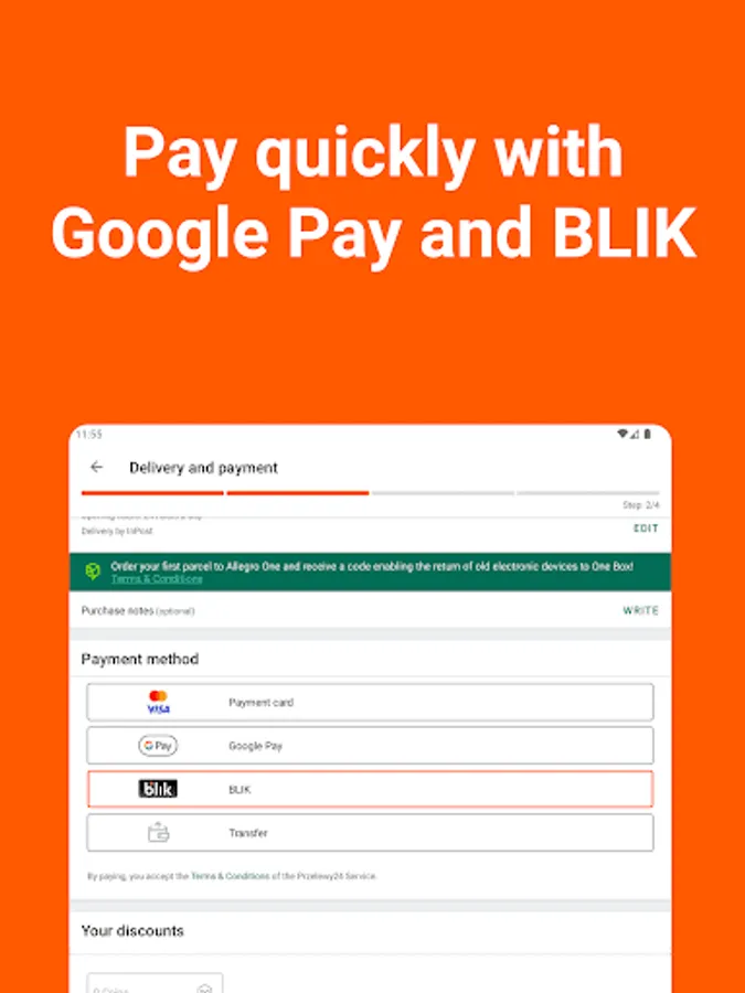 You can also use Allegro Smart! and save on deliveries in the app. You just need to pay once and enjoy free delivery all year or month long.