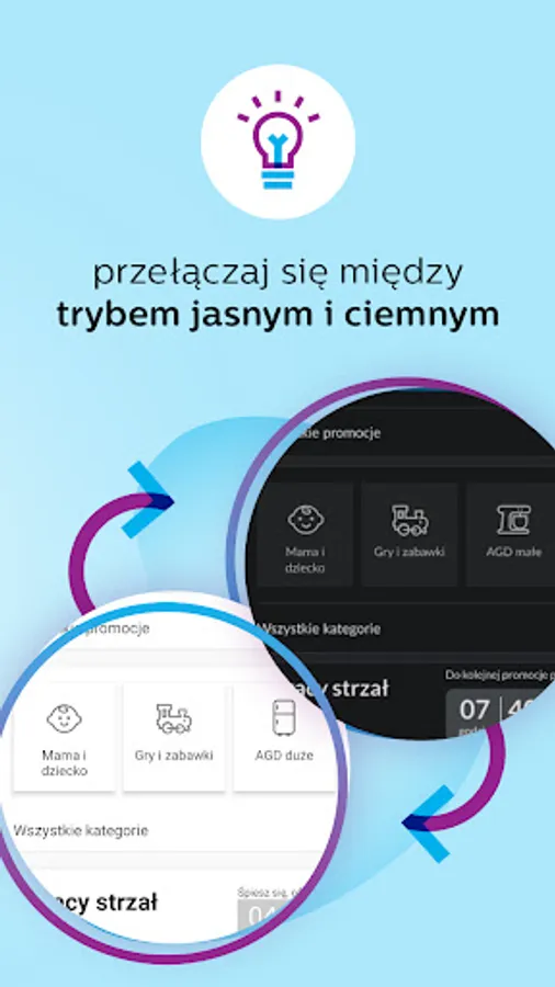 Set the dark mode in the application - take care of your eyesight and battery. Turn on notifications and stay up to date. Receive the latest information about new products, exclusive promotions, Hot Shot and the status of your orders. Now you are sure that you will catch every opportunity.