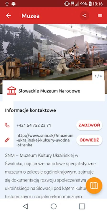 A tourist has at his disposal a database of objects, events, places and routes that facilitate sightseeing. The facilities have been divided into categories, we can find here not only the most interesting monuments, religious and military facilities, but also accommodation and dining options. All objects have a GPS location, so navigating to them is not a problem. Extensive articles introduce us to the atmosphere of places and present their history.