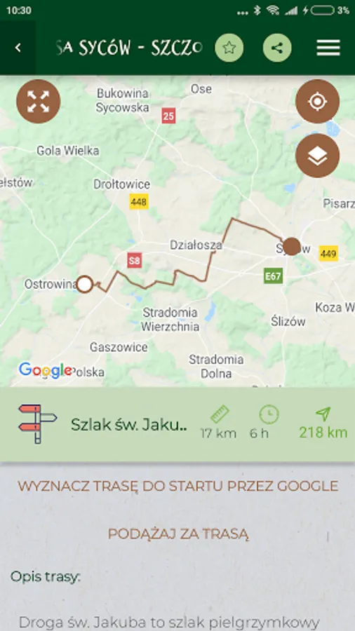 The application also includes a description of exemplary routes - to choose from, but also allows you to plan your trips yourself.