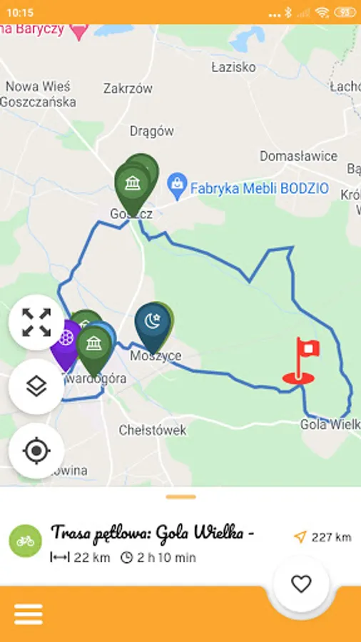 The most important part of the application are cycling routes - the course of each of them can be seen on the map, the application also displays the distance and duration. Additional variety of cycling trips are interesting objects displayed in the vicinity of the route.