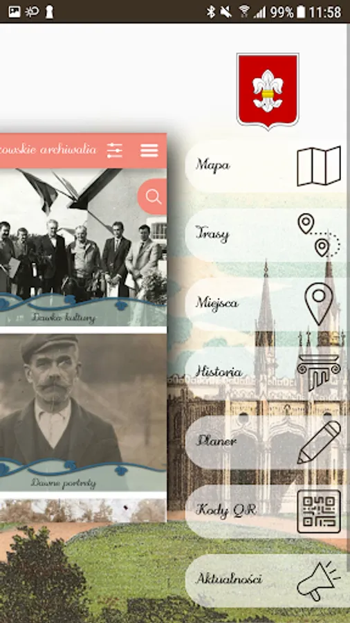 The mobile application also contains a calendar of events and a list of tourist routes, with a specific course, duration and length, which greatly helps in planning your stay. Objects, routes and events can be added to the planner to have the most important information for us at hand. We will also find a section devoted to the history of the area, with archival photographs.